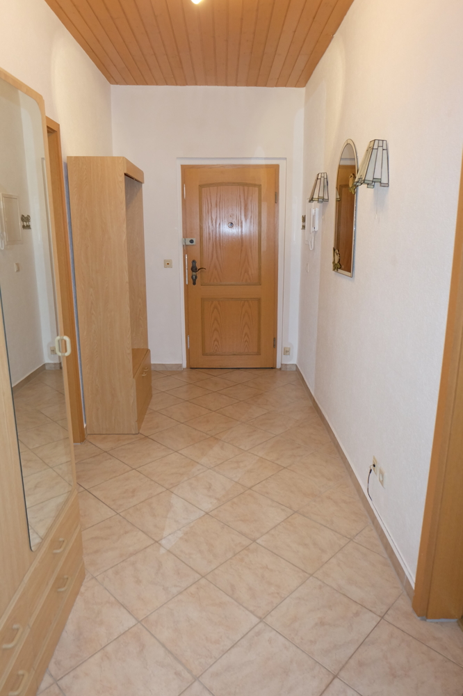 Die Küche ist mit einer Einbauküche ausgestattet und sorgt dank der modernen Spanndecke für ein stilvolles Ambiente. Auch das Badezimmer punktet mit einer Spanndecke sowie funktionaler Ausstattung. Der Flur, die Küche und das Bad sind mit pflegeleichtem und zeitlosen Fliesenboden versehen. Im Bad ist eine Whirlwanne vorhanden.
